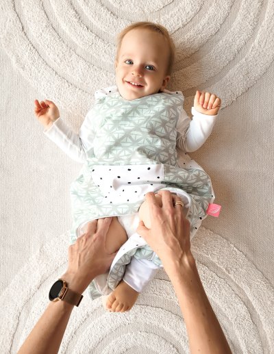 Inovatívne všitý zips veľmi uľahčuje výmenu plienky – po rozopnutí získame pohodlný priestor, ktorý nie je dostupný v iných modeloch spacích vakov s nožičkami. Jedná sa o prvý spací vak tohto typu na trhu Ponúka tiež pohodlie voľného pohybu (vďaka nožičkám) a komfort mimoriadne neinvazívnej výmeny plienky (vďaka inovatívnemu spôsobu všitia zipsu). Okrem toho je spací vak vybavený vreckom, do ktorého si batoľa môže odložiť svoje najcennejšie poklady, ako je plyšová hračka alebo cumlík, a mať ich vždy nablízku.
