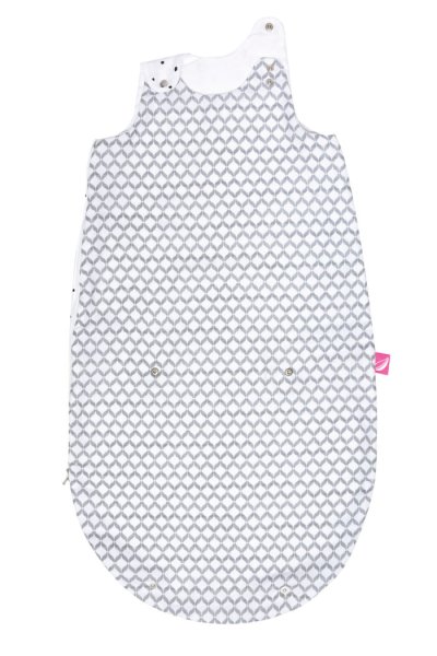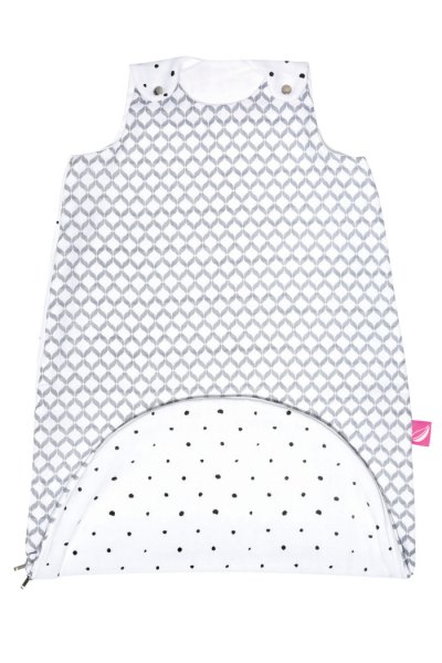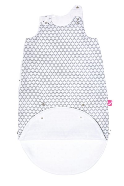 Rastúci spací vak: Spací vak 2v1 poskytuje možnosť nastavenia veľkosti na 2 rozmery: 3-6 mesiacov pri zapnutom vreci, po odopnutí 6-18 mesiacov. Navyše v podpazuší sú umiestnené cvočky, ktoré zmenšujú otvor pre ručičky (u detí do 4,5 kg).