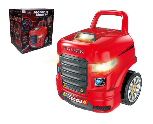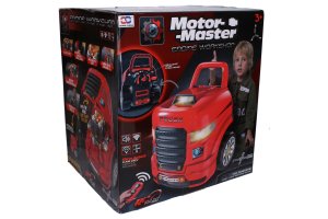 Motor skrutkovací na diaľkové ovládanie - kamión. Infračervený port. Rozmery 40x39x47 cm. Obsahuje 61 súčiastok. Kľúče na diaľkové ovládanie (tlačidlá pre odomknutie, zamknutie, klaksón). Svietiace predné svetlá, klaksón, radiaca páka, výstražné svetlo, štartovacie tlačidlo, odklápacia kapota, osvetlenie motora, meranie oleja. Svetelné a zvukové efekty. 3xAA pre motor nie sú súčasťou, 1xCR2055 pre kľúče súčasťou.