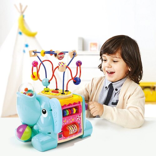 Motorická kocka v tvare slona je veľmi zábavná hračka pre malé deti.