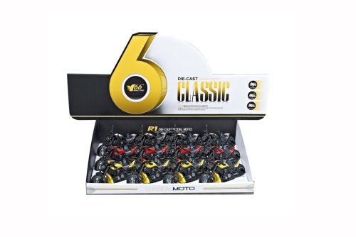 Kovový model motorky 1:12: Vysoká kvalita a detailné prevedenie v mierke 1:12. 3 rôzne designy, ktoré vám umožnia vybrať si motorku podľa vlastného vkusu. Svetelný efekt, ktorý dodáva modelu ešte viac realizmu a atraktivity. Funkcia pull back – natiahnite motorku a pustite ju, aby sa sama rozbehla, čo prináša veľa zábavy a akcie. Tento model motorky je ideálny pre všetkých, ktorí hľadajú kvalitný a realistický model, ktorý sa nielen páči, ale ponúka aj zábavu s funkciou „pull back“. Skvelé na zberateľské účely aj na hranie!