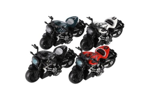 Model krásnej motorky s autentickým dizajnom na spätné natiahnutie. Hračka, ktorú ocení každý malý pretekár, jazdec, či motorkár. Jazdí na spätné natiahnutie. Veľkosť motorky: 10 cm Vhodné pre deti od 3 rokov