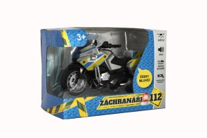 Chceš sa zahrať na dopravného policajta? Tento plastový model motorky s kovovými dielmi je na to ako stvorený. Po spätnom natiahnutí sa motorka rozbehne a po stláčaní zadného kolesa začne svietiť, húkať a hovoriť po česky. Batérie 3x LR41 sú súčasťou balenia. Rozmery balenia: 15 x 11 cm Dĺžka motorky: 12 cm Vhodné pre deti od 3 rokov