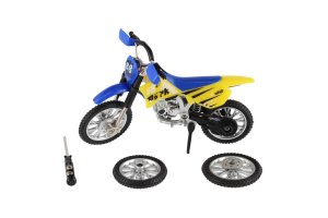 Motorka na ovládanie prstom v sade so skrutkovačom na výmenu kolies. Výzva na precvičenie motoriky prstov. Rozmer motorky 12 cm Vhodné od 3 rokov