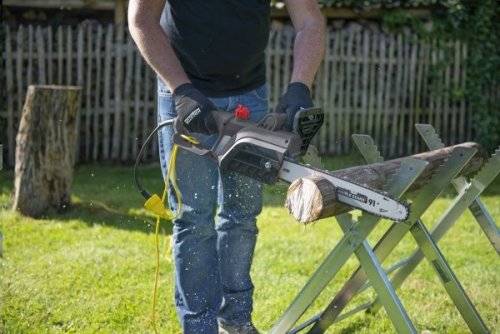 Profesionálne vyrobená píla s napätím 230 - 240 V / 50 Hz a príkonom 2000 W využíva pre svoj výkon energiu zo siete. Na rozdiel od spaľovacieho motora tak nemusíte dopĺňať palivo a čuchať spaliny. Vždy používajte ochranné okuliare, rukavice a slúchadlá.