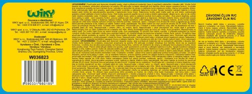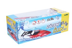 Pretekársky čln RC na diaľkové ovládanie - český obal. Rozmery 33x9,5x8 cm. Frekvencia 2.4 GHz. 3.7V 500mAh batériový pack do člna súčasťou, 2xAA batérie do ovládača nie sú súčasťou. USB kábel súčasťou. Prepínač ON/OFF na ovládači.