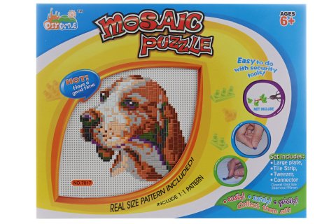 Mozaika s motívom psíka. Balenie obsahuje základňu na stavanie obrázku, pinzetu a 2 háčiky na zavesenie hotového obrázku. Materiál plast. Rozmery základne 26,6x19,9 cm. Rozmery balenia 30x23,5x4 cm. Vek 3+ (odporúčané od 6i rokov)