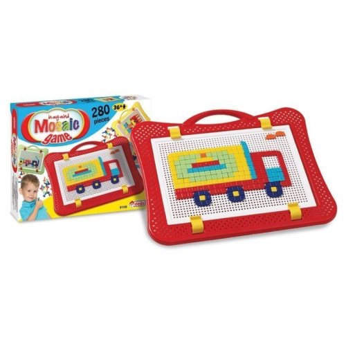 Mozaiková hra rozvíja jemnú detskú motoriku, tvorivosť a fantáziu. Obsah balenia tvoria dierované hracie dosky a 280 ks farebných kolíčkov s hlavičkami rôznych farieb, priemerov a tvarov. Pomocou týchto kolíčkov, ktoré sa zasadzujú do otvorov v hracej doske, tvoria detí rôzne obrázky alebo vzory. Vyrobené z plastov špičkovej kvality. Rozmer obalu je 375x65x295