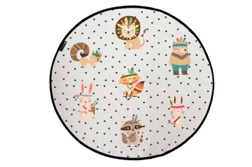 Potlačený hrací plátený koberec s čiernym bavlneným okrajom.