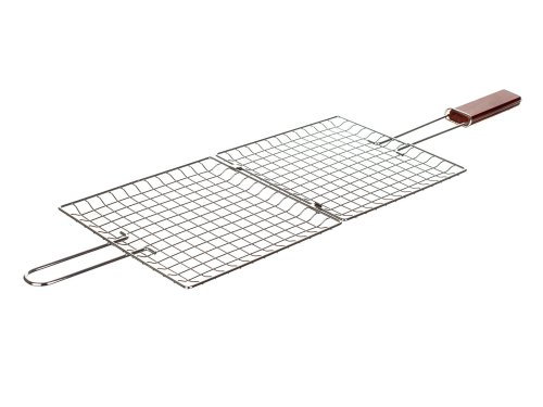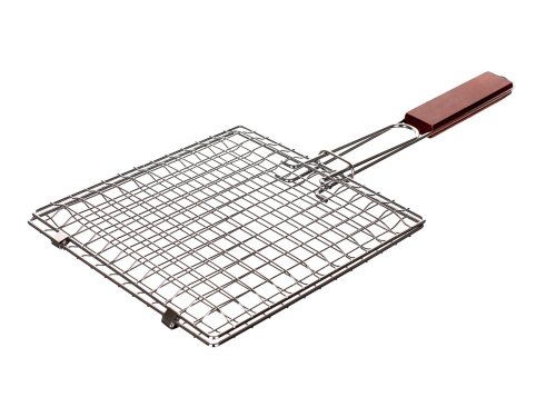 Hranatý grilovací rošt s drevenou rukoväťou využijete na jednoduché grilovanie mäsa. Rošt je vyrobený z pochrómovanej ocele.