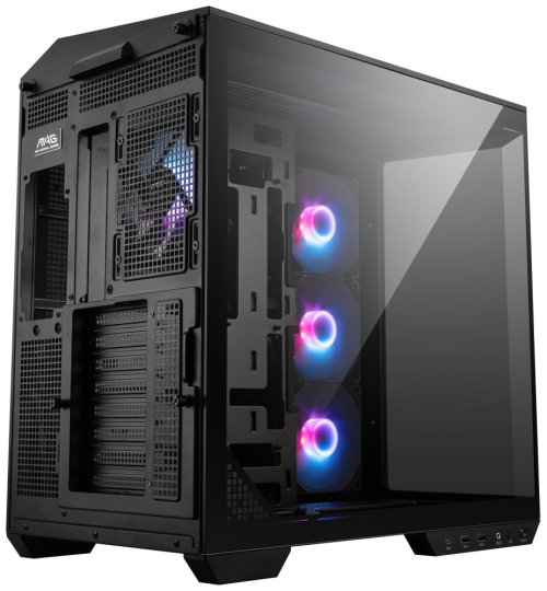 Chýbať nesmie priehľadná bočnica z tvrdeného skla , ktorá vám poskytne jasný vhľad do celého systému. A že bude na čo pozerať. Vnútri skrine MSI MAG PANO 100R PZ nájdete štvoricu predinštalovaných 120mm ARGB ventilátorov . Samozrejmosťou je prítomnosť prachových filtrov , ktoré zamedzujú vniknutiu nečistôt, uľahčujú celkovú údržbu av prípade potreby ich môžete ľahko vybrať a očistiť. Kutili určite ocenia usporiadanie káblov a jednoduchú montáž.