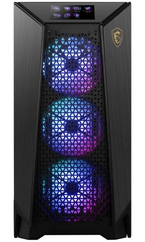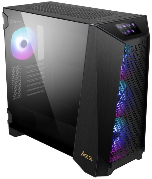 Moderná počítačová skriňa s modulárnym dizajnom, priehľadnou bočnicou z temperovaného skla a polopriehľadným čelom s perforáciou na optimálne prúdenie vzduchu. Formát Middle Tower ponúka dostatok priestoru na uloženie štyroch diskov , základnej dosky o veľkosti E-ATX a až desiatich ventilátorov. Predinštalované sú štyri 140 mm ventilátory s ARGB podsvietením. Hornému panelu dominuje 4,3" dotykový displej s rozlíšením 800 × 480 obrazových bodov, ktorý zobrazuje širokú škálu systémových informácií a nastavení. Ďalej sa tu nachádzajú dva porty USB 3.0 , jeden port USB-C , slúchadlový výstup a audio vstup pre mikrofón. skrini je dostatok priestoru pre chladič CPU do výšky až 185 mm a grafickú kartu s dĺžkou až 400 mm . Vďaka priloženému držiaku je možné grafickú kartu inštalovať aj vertikálne (PCIe kábel nie je súčasťou balenia). na prednej, bočnej alebo vrchnej strane. Súčasťou skrine je tiež sada magnetických prachových filtrov .