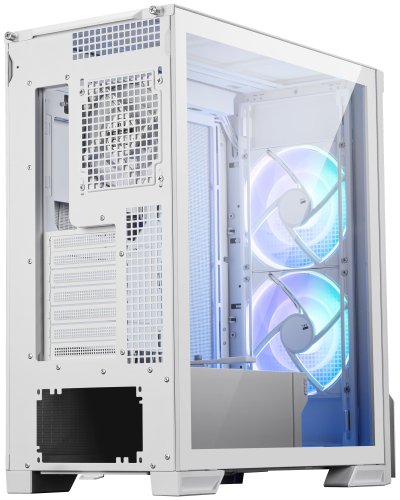Kvalitná počítačová skriňa formátu Middle Tower ponúka 4× 2,5", 1× 3,5" a 1× 2,5"/3,5" voľné pozície pre uloženie pevných alebo SSD diskov. Skriňa je vybavená priehľadnou bočnicou a predným panelom . Predinštalované sú dva 160mm ventilátory s adresovateľným RGB podsvietením a jeden 120mm ventilátor bez podsvietenia. Rýchlu zmenu podsvietenia umožňuje tlačidlo na hornom paneli. Tu sa tiež nachádzajú dva porty USB 3.0 , jeden port USB-C a kombinovaný port slúchadiel a mikrofónu. V skrini je dostatok priestoru pre chladič CPU do výšky až 165 mm a grafickú kartu s dĺžkou až 400 mm. Dômyselné riešenie umožňuje pohodlné umiestnenie až 360 mm dlhého výmenníka vodného chladenia na prednej, hornej aj bočnej strane. Poteší tiež prítomnosť odnímateľných prachových filtrov . Skriňa je dodávaná bez zdroja .