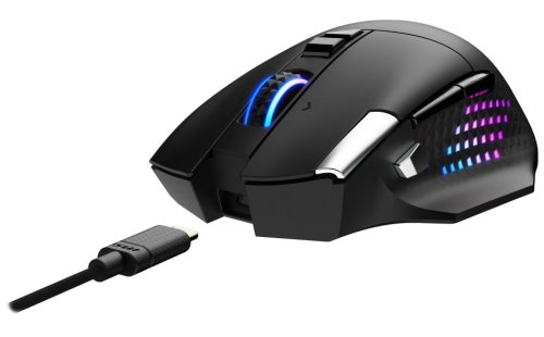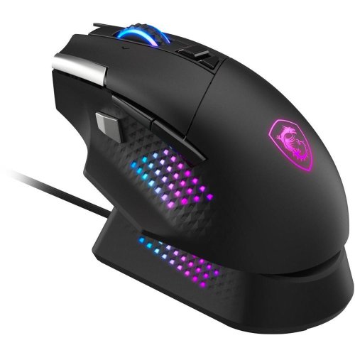 Rozhranie: 2,4 GHz (MSI SWIFTSPEED) / Bluetooth 5.3 / USB 2.0 Senzor: PixArt PAW-3395 optický senzor Obnovovacia frekvencia: 1000 Hz / 1 ms Prepínateľné DPI: 400 / 800 / 1600 / 30 000 (nastaviteľné cez MSI Center) Typ spínačov: OMRON optické mikrospínače Životnosť spínačov: 70 miliónov kliknutí Počet tlačidiel: 15 (13 programovateľných) 4smerné koliesko s prepínaním medzi režimom krok za krokom a voľným otáčaním Podsvietenie: RGB Kapacita batérie: 450 mA Operačný systém: Windows 10 (a novší) Dĺžka kábla: 2 m FriXionFree kábel (USB-C na USB-A) Rozmery: 129 × 80 × 44 mm Hmotnosť: 97 g Príslušenstvo: MOUSE DOCK PRO, Qi certifikovaný nabíjací puk, 2,4 GHz bezdrôtový dongle, bezdrôtový dongle, (USB-C na USB-A)