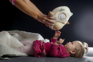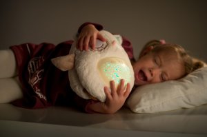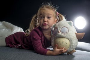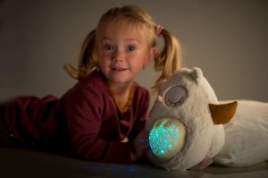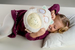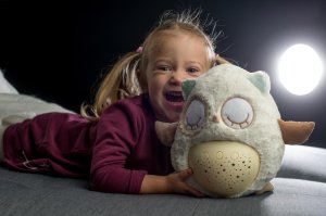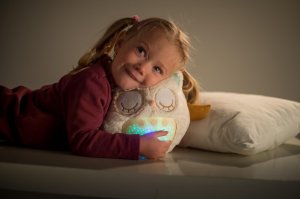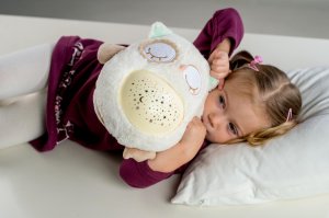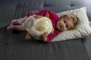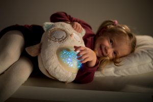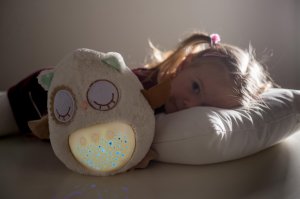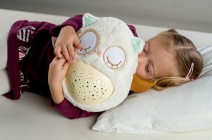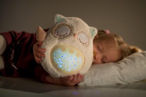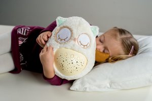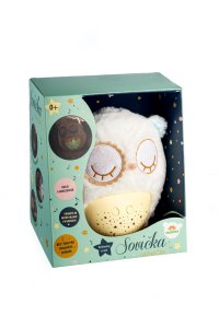 Plyšový zaspávač v podobe malej sovy pomáha deťom ľahšie zaspať za pomoci príjemných melódií a tlmeného svetla. Po stlačení tlačidiel na brušku sa z izbičky stane razom ríša snov. Sovička premieta nočnú oblohu v 8 farbách, hrá 8 uspávaniek a tiež zvuky, na ktoré sú deti zvyknuté od mamičky z bruška. Po odohraní uspávanky premieta nočnú oblohu cca 1 minútu, potom sa vypne. Veľkosť malej sovy: 25 cm Veľkosť krabice: 22 x 26 x 17 cm Na batérie - 3 ks typu AA 1,5 V - sú súčasťou hračky Vhodná pre deti od 0 mesiacov