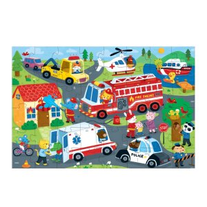Podlahové puzzle obsahuje 48 dielikov. Zobrazuje všetky možné druhy záchranných vozidiel. Veľké kúsky sú ideálne pre malé detské ruky. Puzzle sú vyrobené za použitia významného podielu recyklovaného papiera a ponúkajú špičkovú potlač nezávadnými farbami. Sú opatrené matnou povrchovou úpravou, ktorá zaisťuje za všetkých okolností verné podanie detailov i farieb. Ich zadná strana je potiahnutá hladkým, na dotyk príjemným povrchom, vďaka ktorému sa pri skladovaní rozloženého puzzle netvorí prach. Spolu so starostlivo zabalenými dielikmi nájdete v balení aj letáčik s návodným obrázkom, ktorý spravidla obsahuje ďalšie informácie o tvorcoch a pozadí vzniku diela. Dodávané v mimoriadne pevnej a pútavo spracovanej kartónovej krabičke vyrobenej z recyklovaného kartónu. Hlavné vlastnosti: 48 precízne vyrezaných dielikovvyrobených s použitím recyklovaných a udržateľne získaných materiálovstarostlivo vybraný motív od renomovaných tvorcov a umelcovpotlač a prevedenie najvyššej kvalityobsahuje návodný obrázok