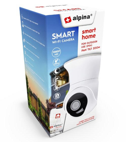 Radi si svoj cenný majetok čo najlepšie strážime. Spomeňte si napríklad na dom, ktorý zdieľate so svojou rodinou, alebo na firmu, pre ktorú ste roky tvrdo pracovali. Aby ste mohli mať veci čo najviac na očiach, alpina Smart home predstavuje múdru wifi kameru pre vonkajšie použitie. Táto šikovná bezpečnostná kamera má funkciu otáčania a nakláňania, nočné videnie až na 10 metrov, zvukový a pohybový senzor a má aj certifikáciu IP54 proti prachu a vode. Stručne povedané: perfektný gadget, aby ste mohli pozorne sledovať okolie vášho domova alebo firemných priestorov.WiFi kamera na vonkajšie použitieVonkajšia WiFi kamera alpina Smart home je dokonalou bezpečnostnou kamerou pre váš domov alebo firemné priestory. Namontujete ho na strategické miesto, aby ste mohli dohliadať na zlodejov a ďalších nepozvaných hostí. Vonkajšia kamera má certifikáciu IP54 proti prachu a vode. To znamená, že vonkajšia kamera je úplne prachotesná a chránená proti striekajúcej vode s rýchlosťou 10 l/min v akomkoľvek uhle. Full HD kvalita obrazu a nočné videnie Inteligentná domáca vonkajšia kamera alpina ponúka pôsobivú kvalitu obrazu Full HD v rozlíšení 1080p. Takže nikdy nezmeškáte ani okamih. Aj v noci môžete mať veci neustále pod dohľadom. WiFi kamera má špeciálne nočné videnie až na 10 metrov. Takže aj v noci alebo skoro ráno môžete vidieť, čo sa deje okolo vášho domova . Zvukový a pohybový senzor Okrem Full HD kvality obrazu a nočného videnia je tu ešte jeden spôsob, ako domáca bezpečnostná kamera alpina Smart zaistí, že už nikdy nezmeškáte žiadny okamih. Vonkajšia kamera má špeciálny zvukový a pohybový senzor, ktorý zachytí akýkoľvek zvuk alebo pohyb v bezprostrednej blízkosti kamery. Keď zaznamenáte zvuk alebo pohyb, kamera odošle push notifikáciu do vášho smartfónu, aby vás upozornila. Obojsmerná komunikáciaĎalšou užitočnou funkciou tejto alpina Smart home WiFi kamery je možnosť obojsmernej komunikácie. To je obzvlášť užitočné, keď sa vo dverách nečakane objavia priatelia, rodina alebo poštový pracovník, keď nie ste doma. Prostredníctvom vstavaného mikrofónu môžete počuť, čo sa vám hovorí pri dverách, a tiež hovoriť späť. Dajte napríklad poštárovi vedieť, že môže balík doručiť susedom, ktorí sú doma . Aplikácia alpina Smart homeRôzne funkcie vonkajšej bezpečnostnej kamery alpina je možné ľahko ovládať na diaľku pomocou aplikácie alpina Smart home. Aplikáciu si môžete ľahko stiahnuť do svojho smartfónu cez Google Play Store (android) alebo App Store (iOS). Aplikácia vám umožňuje prezerať živé obrazy vášho domova alebo firemných priestorov, upraviť uhol pohľadu kamery, prijímať upozornenia, keď je detekovaný zvuk alebo pohyb, av prípade potreby robiť snímky obrazu. Aplikáciu môžete používať odkiaľkoľvek, ak máte pripojenie k internetu. Obsah balenia - Inteligentná IP kamera - Držiak kamery - Napájací adaptér - Rýchly návod - Maximálne rozlíšenie videa: Full HD 1080p - Aplikácia dostupná pre: Android, IOS - Pripojenie napájania zariadenia: EU zásuvka - typ EF- Krytie IP: IP54- Vstupný prúd: 100-240V- Veľkosť šošovky: 4 mm- Maximálna kapacita úložiska: 16 GB- Maximálny počet snímok za sekundu: 25 snímok za sekundu- Nočné videnie: 10m- Výstup: 12V/1A- Uhol otáčania: 355 ° - Uhol náklonu: 85 ° - Vysielací frekvenčný rozsah: 2412 - 2472 MHz - Kompresia videa: H.264 - Pozorovací uhol: 100 °.