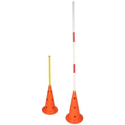 Značkovací kužeľ v dvoch farbách (oranžová a žltá) s výškou 52 cm na vymedzenie hracieho ihriska alebo na vytvorenie slalomovej a prekážkovej tréningovej dráhy. Viacúčelový kužeľ Multi je na rozdiel od klasických modelov veľmi variabilný a má univerzálne využitie. V jeho plášti je celkom 12 otvorov s priemerom 3 cm umiestnených v troch výškach. Na špičke kužeľa je krížový výrez. Do otvorov je možné zasunúť v ľubovoľnej kombinácii prekážkovej tyče a do výrezu na vrchole umiestniť ďalšie tréningové pomôcky s menším priemerom (napr. kruh). Kužeľ Multi odporúčame skombinovať s plastovými tyčkami P1, P2, P3, teleskopickou tyčou P4 alebo HP prekážkovým kruhom. Parametre: -výška 52 cm -otvory vo výškach 8, 23, 38 cm -základňa kužeľa: priemer 29,5 cm -hmotnosť: 0,5 kg Materiál: plast