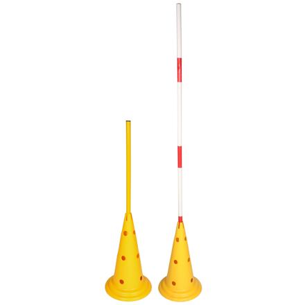 Značkovací kužeľ v dvoch farbách (oranžová a žltá) s výškou 52 cm na vymedzenie hracieho ihriska alebo na vytvorenie slalomovej a prekážkovej tréningovej dráhy. Viacúčelový kužeľ Multi je na rozdiel od klasických modelov veľmi variabilný a má univerzálne využitie. V jeho plášti je celkom 12 otvorov s priemerom 3 cm umiestnených v troch výškach. Na špičke kužeľa je krížový výrez. Do otvorov je možné zasunúť v ľubovoľnej kombinácii prekážkovej tyče a do výrezu na vrchole umiestniť ďalšie tréningové pomôcky s menším priemerom (napr. kruh). Kužeľ Multi odporúčame skombinovať s plastovými tyčkami P1, P2, P3, teleskopickou tyčou P4 alebo HP prekážkovým kruhom. Parametre: -výška 52 cm -otvory vo výškach 8, 23, 38 cm -základňa kužeľa: priemer 29,5 cm -hmotnosť: 0,5 kg Materiál: plast