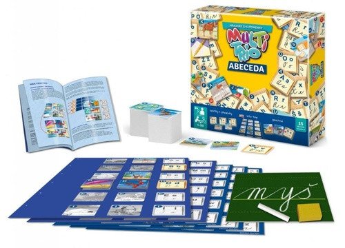 Začína sa vaše dieťa vypytovať na písmená? So súborom hier Multi-TRIO Abeceda môžete jeho záujem prehĺbiť a zábavnou formou sa čoskoro naučia všetky písmenká. Doskovka okrem hier obsahuje aj prvú písanku: doštičku - tabuľku s kriedou, vhodnú nielen na precvičenie písania, ale aj pre hru Šibenice. Multi-TRIO je výborné pre jedného hráča, ale aj skupinku hráčov. Hravá čeština by mohol byť druhý názov pre súbor 15 hier z Multri-TRIO Abecedy. Vďaka veľkému množstvu hier a ich herných variantov sa deti hrajú a nenásilnou formou opakujú písmená, učia sa ich skladať do správneho poradia a nacvičujú ich písanie. Napríklad v hre Povedz slovo! si hráči precvičujú slovnú zásobu. V hre ABECEDA sa hráči učia radiť písmenká v správnom poradí, aby v budúcnosti mohli znalosť využívať pri orientácii v rôznych zoznamoch a encyklopédiách. Hru Šibenicu asi nie je treba predstavovať. Ďalej tu nájdete Pexetrio (= pexeso s 3 kartičkami) alebo hru LOTO-TRIO a ďalšie varianty dosky značky Pexetrio. Súčasťou hernej sady je tabuľka s kriedou a mazacou hubkou. Nechajte sa deti hrať na pána učiteľa. Alebo im ukážte, ako sa zapisujú písmenká a kreslí šibenice v rovnomennej hre. Multri-TRIO Abeceda je určené pre deti od cca 5 rokov, tzn. keď ich začnú zaujímať písmenká. Niektoré z hier sú pre 1 hráča, iné si zahrajú 2-6 hráčov a niektoré varianty môže hrať aj 20 hráčov. Súbor je teda vhodný ako na domáce precvičovanie, tak do škôlok, školských družín a hodín slovenského jazyka. Časovo sú hry neobmedzené, záleží, ako dlho budú deti baviť. Vďaka mnohým variantom je možné pravidlá obmieňať, každý deň hrať niečo iné a deti sa len tak nezačnú nudiť. Sada obsahuje 30 písmeniek abecedy (90 kartičiek) herné plány (5 ks) pre herné varianty LOTO trio herné plány (5 ks) pre herné varianty Hráme sa s písmenkami tabuľu na prvé písanie písmeniek a slov (písanka) tabuľu na kreslenie šibenice pre hru Hľadaj slovo kriedu, hubku podrobný návod pre všetky herné varianty