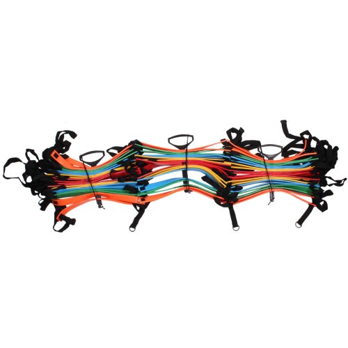 Trojradový agility rebrík Merco MultiColour Triple je tréningová pomôcka na kondičnú prípravu športovcov. Celkom 30 gumových priečok pri prevedení 4,5m, alebo 60 gumových priečok pri prevedení 9m je možné ľahko nastaviť na prispôsobenie vzdialenosti medzi jednotlivými priečkami podľa potrieb a nápaditosti užívateľa. Súčasťou agility rebríka Merco MultiColour Triple sú madlá, ktoré sa preťahujú stredom priečok a zabraňujú zamotaniu rebríkov + obal pre ľahké uskladnenie. Pri oboch variantoch rebríka je šírka 125 cm. Upozornenie: Agility rebríky neslúžia v žiadnom prípade na lezenie, ale na cvičenie techniky a rýchlosti športovcov na zemi.