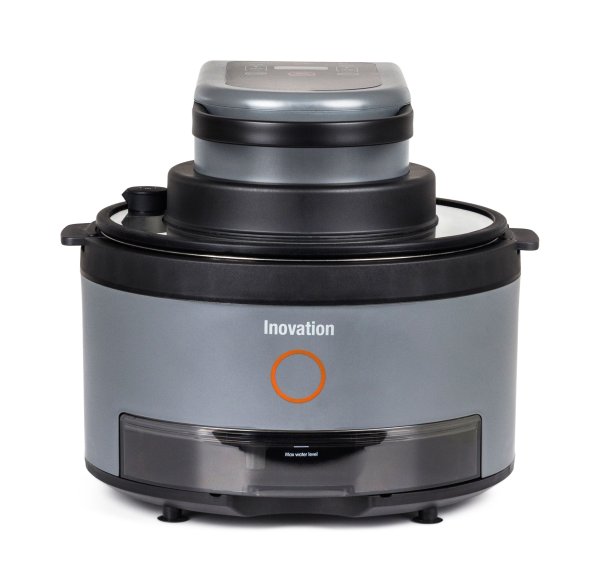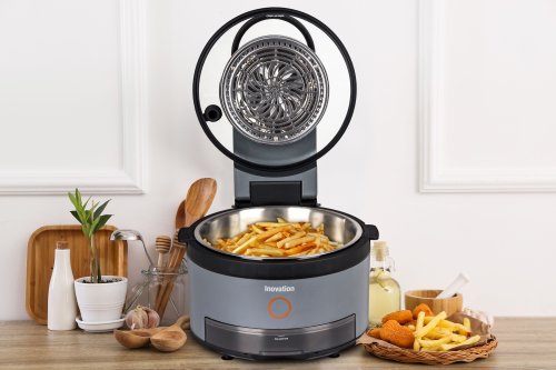 V teplovzdušnej fritéze Inovation s parným varením od značky G21 urobíte celú potrebnú dávku jedla naraz .
