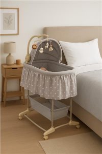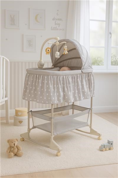 Multifunkčná detská kolíska New Baby je ideálnou voľbou ako pre deti, tak pre rodičov, pre ktorých je kľúčová funkčnosť a bezpečie. Výrobok slúži ako postieľka aj kolíska. Jej mobilita poskytuje obrovské pohodlie, pretože dieťa bude vždy v blízkosti svojich rodičov. Praktický kôš vám umožní mať všetko potrebné na dosah ruky a včas reagovať na potreby drobca bez toho, aby ste sa od neho museli vzďaľovať. Poťah kolísky je vyrobený z priedušného a príjemného na dotyk materiálu, ktorý je možné ľahko zložiť a vyprať. Kolotoč s farebnými zvieratkami je vybavený nočným svetlom, hudobným modulom s 8 melódiami a funkciou jemných vibrácií s možnosťou zmeny ich intenzity. Je napájaný 3 batériami AA LR6-1,5 V (nie sú súčasťou dodávky). Jednu zo strán postieľky je možné rozopnúť, čo oceníte počas každodennej a často aj nočnej starostlivosti o Vaše dieťatko.
