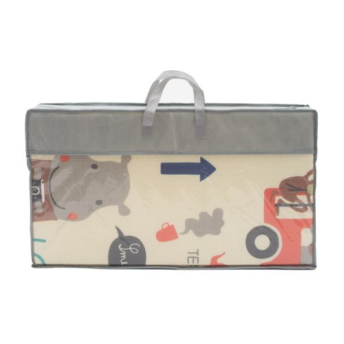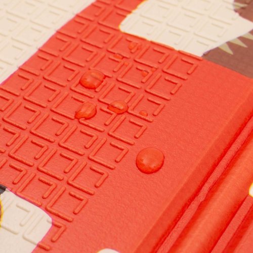 Podložka má naozaj úctyhodné rozmery 200x150 cm však po zložení má rozmery len 70x40x10 centimetrov a ľahko ho zbalíte do praktickej tašky, v ktorej je podložka dodávaná. Je certifikovaná podľa normy EN71 ako hračka a tým spĺňa prísnejšie požiadavky než niektoré konkurenčné podložky čo sa týka bezpečnosti, materiálového a chemického zloženia.