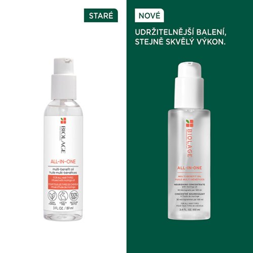 Túžite po žiarivých a hebkých vlasoch ako satén? Multifukčný olej Biolage All-In-One sa o to postará. Intenzívne a hĺbkovo ich vyživí, avšak bez nadmerného zaťaženia. Zloženie s moringovým olejom vlasom dodá saténový lesk a hebkosť. Pomôže vám skrotiť aj nepoddajné vlasy a zaručí ich ľahkú úpravu. Navyše vďaka multifunkčnému zloženiu, je možné olej použiť ako predšampónovú, bezoplachovú alebo nočnú starostlivosť.