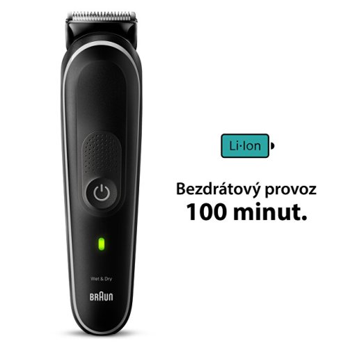 Stylingová sada Braun 10v1 je univerzálny nástroj pre kompletnú starostlivosť o fúzy, vlasy a celé telo. Umožňuje precízne zastrihovanie fúzov, chĺpkov v ušiach a nose, domáci strih vlasov aj úpravu tela. Extrémne ostré brity zaisťujú rýchle a efektívne zastrihnutie, zatiaľ čo rôzne hrebene umožňujú jednoduchú úpravu bez ohľadu na dĺžku vlasov a fúzov. Vďaka výkonnej lítium-iónovej batérii s až 100 minútami bezdrôtovej prevádzky a 100% vodotesnému dizajnu je zastrihávač vhodný aj na použitie v sprche.