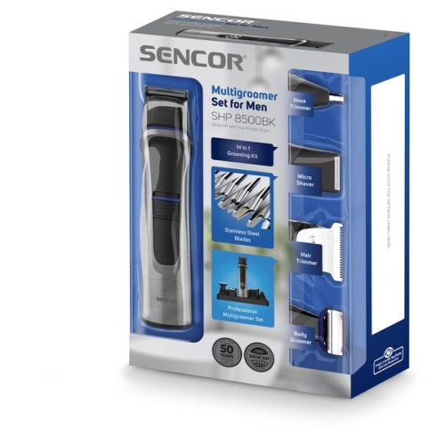 Multifunkčný zastrihávač Sencor SHP 8500BK je ideálnou voľbou pre komplexnú starostlivosť o vzhľad. Je vybavený nerezovými čepeľami a veľmi tichým, výkonným profesionálnym motorom, ktorý si ľahko poradí aj s hustými vlasmi a fúzmi. Vďaka ergonomickej rukoväti prístroj skvele padne do ruky a pohodlne sa ovláda. Súčasťou balenia je 14 výmenných nástavcov pre rôzne typy zastrihovania – od vlasov, fúzov a tela, až po nos a uši. Nechýbajú ani mikroholiace hlavice a rôzne hrebene. Na jedno nabitie vydrží až 60 minút prevádzky, pričom plné dobitie trvá len 2 hodiny. Prístroj je vodeodolný (IPX5), má prepínač zapnutie/vypnutie a ukrýva vstavanú Li-Ion batériu o kapacite 1200 mAh. V príslušenstve nájdete okrem iného aj mazací olej, čistiacu kefku, nabíjací USB-C kábel a praktický dlhý hrebeň.