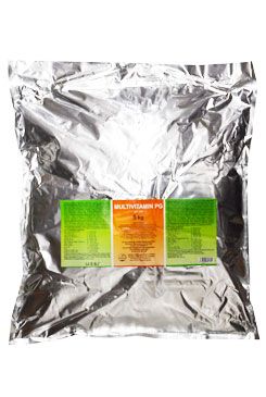zloženie: Retinoli acetát 5 000 000 IU, Colecalciferolum 500 000 IU, tokoferolu-alfa-acetas 5000 mg, Thiamini hydrochloridum 2000 mg, Riboflavinum 4000 mg, Pyridoxini hydrochloridum 2000 mg, Cyanocobalaminum 10 mg, Acidum ascorbicum 10000 mg, Biotinum 30 mg, kyselina nikotínová 15000 mg, Calcii pantothenas 6000 mg, Acidum folicum 500 mg, cholín tartras 15000 mg, lyzín hydrochloridum 15 000 mg, DL- Methioninum 8000 mg, Vehiculum ad 1 000 g.