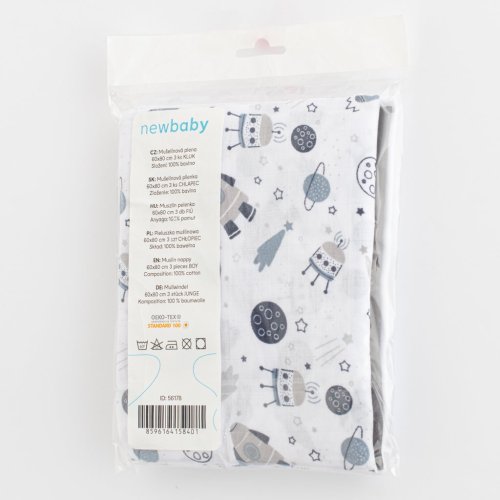 Mušelínové detské plienky New Baby vo zvýhodnenej sade. Vysoko kvalitné plienky s výhodnou gramážou. Dobre absorbujú vlhkosť, umožňujú detskej pokožke dýchať a nedráždia ju. Balenie obsahuje 3 ks. Dve plienky jednofarebné a jedna s obrázkom. Vhodne zvolené farby a obrázky pre chlapčekov. Ľahká konštrukcia umožňuje mušelínu „dýchať“ a zaisťuje dostatočnú cirkuláciu vzduchu, čím znižuje riziko prehriatia. Táto vlastnosť pomáha udržať vaše bábätko v pohodlí, bezpečí a rodičov v pokoji. Mušelín je veľmi odolný, a to natoľko, že ľahko zvládne opakované pranie a časom je ľahšia a mäkšia. Mušelínová plienka je ideálna na leto, kedy môže nahradiť prikrývku v postieľke alebo kočíku. Multifunkčný výrobok, ktorý sa oplatí mať vo svojej výbave. Rozmer: 60x80 cm. Zloženie: 100% bavlna. Gramáž materiálu: 110g/m2. Certifikát: OEKO-TEX STANDARD 100.