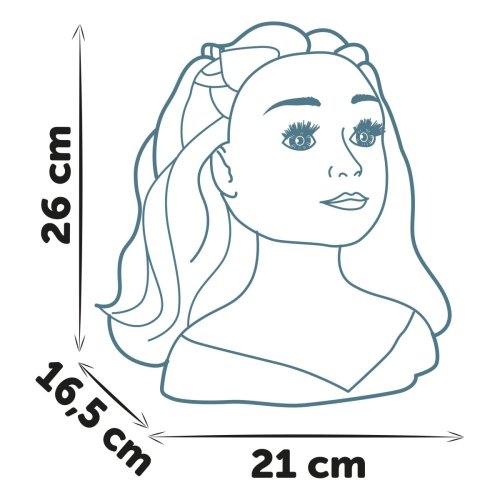 Česacia hlava na vytváranie trendy účesov. S magickou funkciou, použi priložený štetec na pery namočený do studenej vody a pery sa krásne vyfarbia. Obsahuje 19 ks doplnkov, ktoré môžeš uschovať v tajnej skrýši v podstavci hlavy. Vybavené prísavkami na spodnej časti podstavca pre lepšiu stabilitu. Výška hlavy 26 cm.