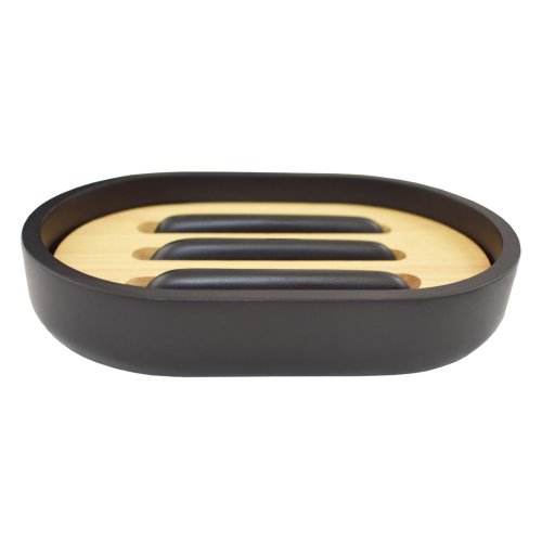 Elegantná oválna čierna mydlenka sa hodí do každej kúpeľne.