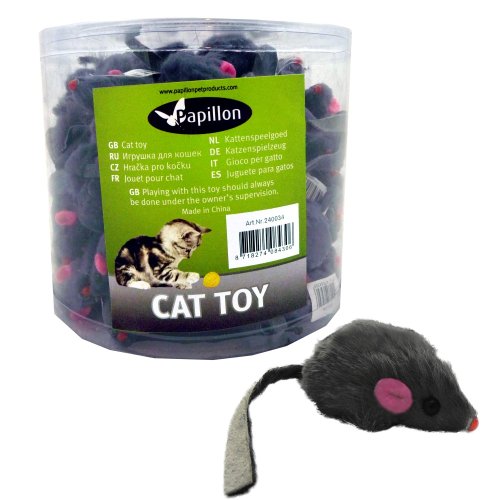 aktívna hračka pre mačky - šedá hrkajúca myš s kožušinou