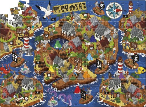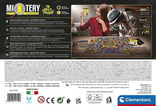 Clementoni puzzle zo série Mystery s motívom Veľkého pirátskeho pokladu. Skladajte puzzle, riešte hádanky a odhaľte záhadu. Rozmer balenia: 21,5 x 31,5 x 7 cm. Vek: 8+