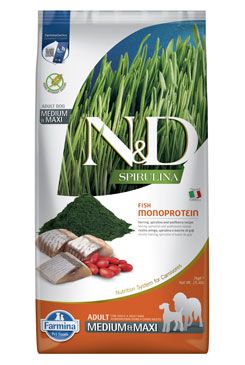 Sleď, spirulina a kustovnica čínska. Kompletné krmivo pre dospelé psy.