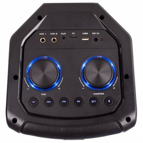 Párty reproduktor s výkonom 450 W a farebným LED podsvietením . Hudbu je možné prehrávať ako drôtovo cez AUX vstup , tak aj bezdrôtovo pomocou technológie Bluetooth . Pre rýchle prehrávanie z pamäťových médií je prítomný USB port a čítačka microSD kariet . Ak si párty chcete naozaj užiť, môžete využiť aj dva vstupy pre mikrofón . V balení sa mikrofón nachádza, reproduktor je preto vhodný aj pre karaoke. Vďaka vstavanej batérii je možné prehrávať hudbu až 4 hodiny bez nutnosti pripojenia na elektrickú sieť.