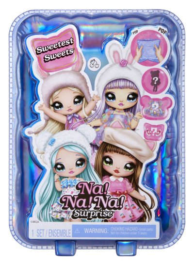 Získaj obľúbenú postavičku Na! Na! Na! Surprise v úplne nových modeloch. Bábiky meria 18 cm a nájdeš ich v balóniku s konfetami. Môžeš získať ďalšie 4 do zbierky! Každá bábika je inšpirovaná nejakým zvieratkom a spoznáš ho nielen z mena, ale aj podľa klobúčika, ktorý má na hlave.