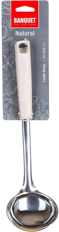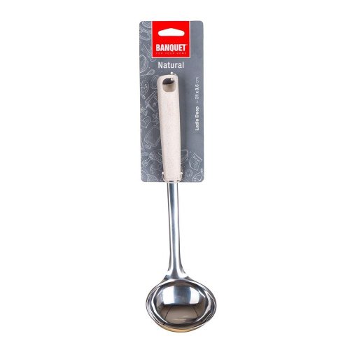 Naberačka NATURAL vyrobená z nerezovej ocele, je určená na profesionálne aj domáce použitie Naberačka je vybavená praktickým očkom pre možnosť zavesenia, ľahko sa udržuje a je možné umývať v umývačke riadu. .Jednoduchý funkčný dizajn zabezpečuje nadčasovosť a dlhú morálnu i kvalitatívnu životnosť všetkých výrobkov. Držadlo je vyrobené z polypropylénu a pšeničných otrúb.