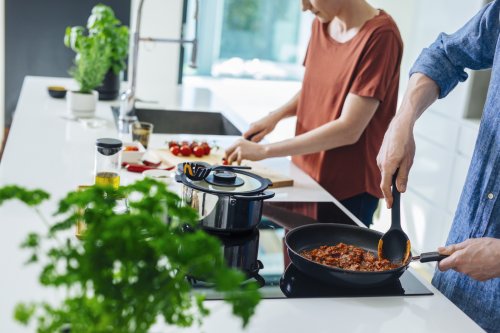 • Integrovaný výstupok pre ľahké odloženie na kuchynskej linke bez jej zašpinenia