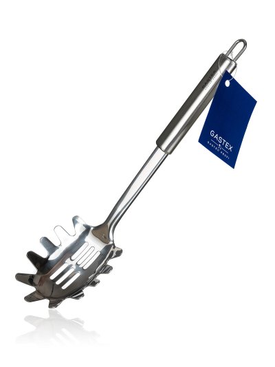 Naberačka na špagety AZORA vyrobená z nehrdzavejúcej ocele, je určená na profesionálne aj domáce použitie. Naberačka je opatrená praktickým očkom pre možnosť zavesenia, ľahko sa udržuje, možno umývať v umývačke riadu. Rad kuchynského náčinia GASTEX spĺňa náročné požiadavky profesionálov a je vhodný aj na domáce použitie. Jednoduchý funkčný dizajn zabezpečuje nadčasovosť a dlhú morálnu i kvalitatívnu životnosť všetkých výrobkov.