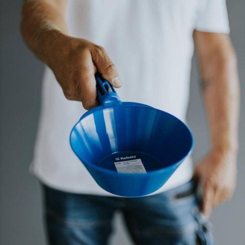 naberačka murárska plastová priemer 170 mm plast PP - polypropylén háčik na zavesenie farba modrá slúži na naberanie a premiestňovanie stavebnej hmoty (malta, betón) a sypkého materiálu (cement, piesok, …).