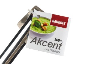 Nerezová naberačka AKCENT uľahčí servírovanie omáčok a tekutých pokrmov. Je opatrená háčikom pre ľahké zavesenie na lištu alebo hrniec. Naberačka je vhodná do umývačky riadu.