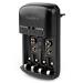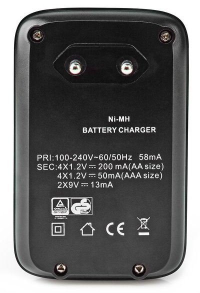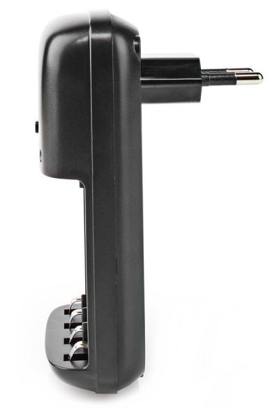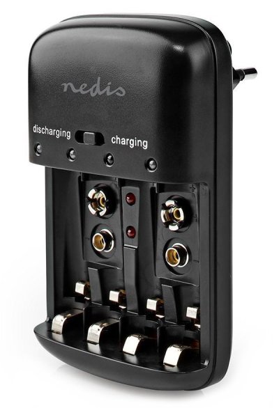 Nabíjačka až pre štyri batérie typu AA alebo AAA, alebo až pre dve batérie 9 V. Na nabíjačke sa nachádza LED indikátor nabíjania .