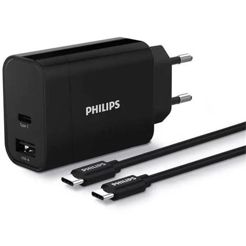 Nabíjačka duálna nástenná Philips DLP5321NB/12 + 1m kábel USBC na USBC, čierny