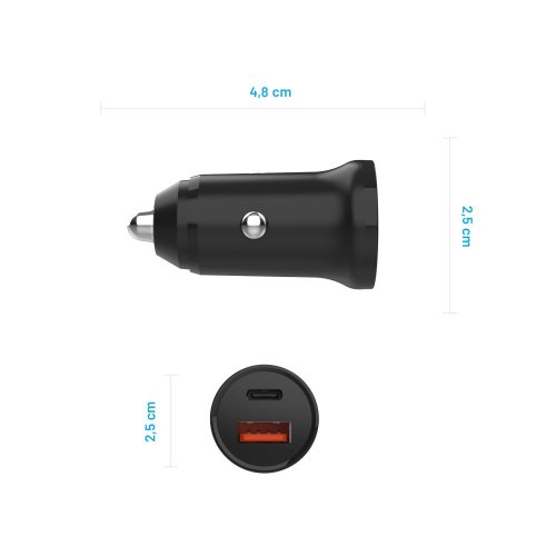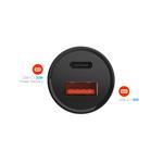 Nabíjačku jednoducho zapojíte do zásuvky zapaľovača . Je vybavená 2 portami - rýchly USB-C port s výkonom a podporou Power Delivery 3.0 a USB-A port. Nabíjate pokojne hneď 2 zariadenia súčasne. Nabíjačka rozpozná energiu, ktorú potrebuje pripojený mobil, tablet alebo napríklad GPS.