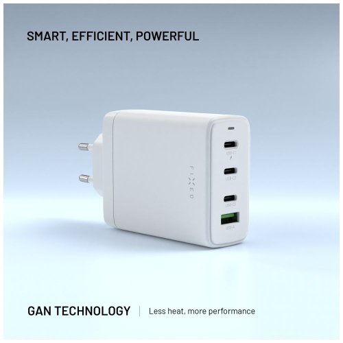 Nabíjačka FIXED GaN 120 W je ideálnou voľbou pre každého, kto hľadá univerzálne a výkonné riešenie pre každodenné dobíjanie. Vďaka technológii GaN ponúka vysoký výkon bez zbytočného prehrievania av oveľa menšom tele, než je u bežných adaptérov obvyklé. Výkon až 100 W na jednom USB-C porte s podporou PD 3.0 umožňuje rýchle nabíjanie notebookov, zatiaľ čo ostatné porty obslúžia smartfóny, tablety alebo ďalšie príslušenstvo. Vďaka flexibilným kombináciám výstupov zvládne napájať aj viac zariadení naraz, bezpečne a bez kompromisov.