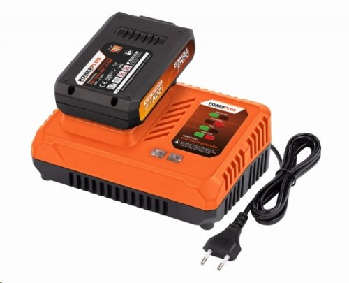 Obe lítium-iónové batérie možno dokonca nabíjať touto 20/40V nabíjačkou , kedy 20V akumulátor nabijete za približne 40 minút a 40V batérie za 2 až 2,5 hodiny . Po nabití sa červená kontrolka rozsvieti na zeleno a môžete pokračovať v práci. Duálne batérie spolupracujú iba s AKU náradím a záhradnou technikou z radu Powerplus Dual Power.